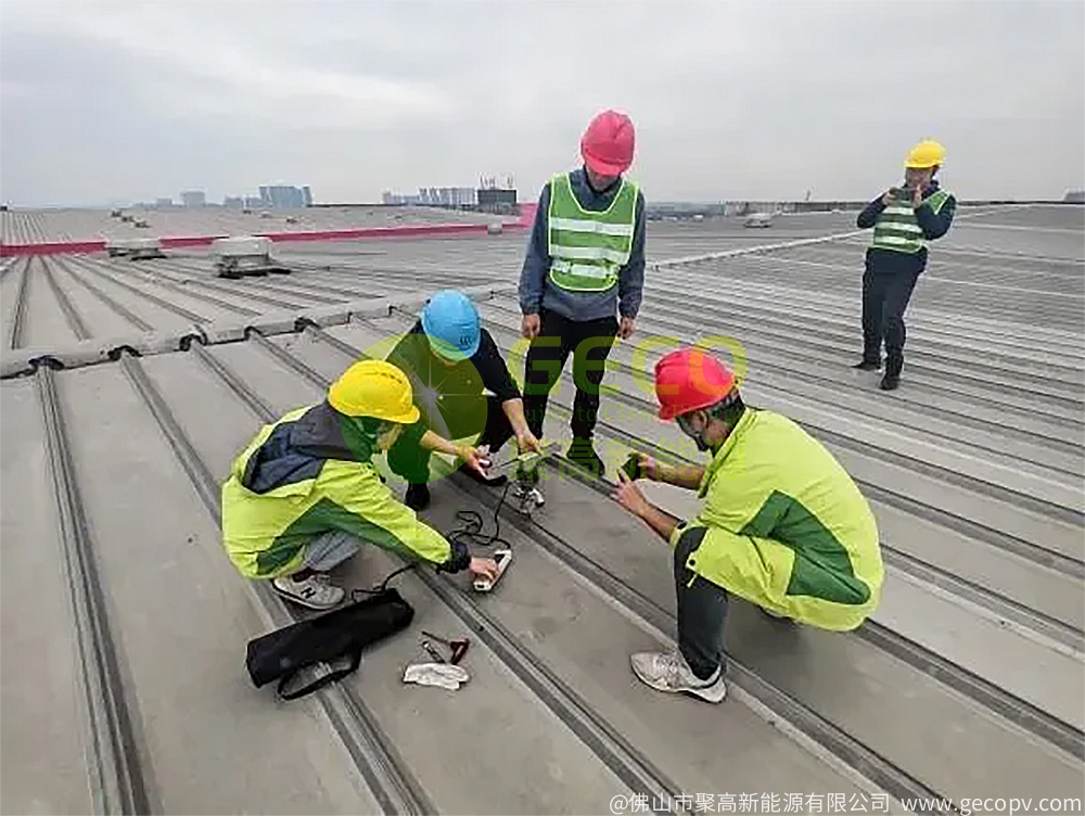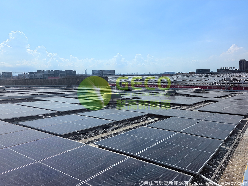 在“双碳”目标引领下,绿色仓储成为企业转型重要方向。佛山市聚高新能源有限公司(以下简称“聚高新能源”)凭借专业光伏支架服务,成功为广东广州南沙某B2C平台物流仓储园区打造 4.942MW 分布式光伏项目,让彩钢瓦屋顶变身 “绿色发电站”。